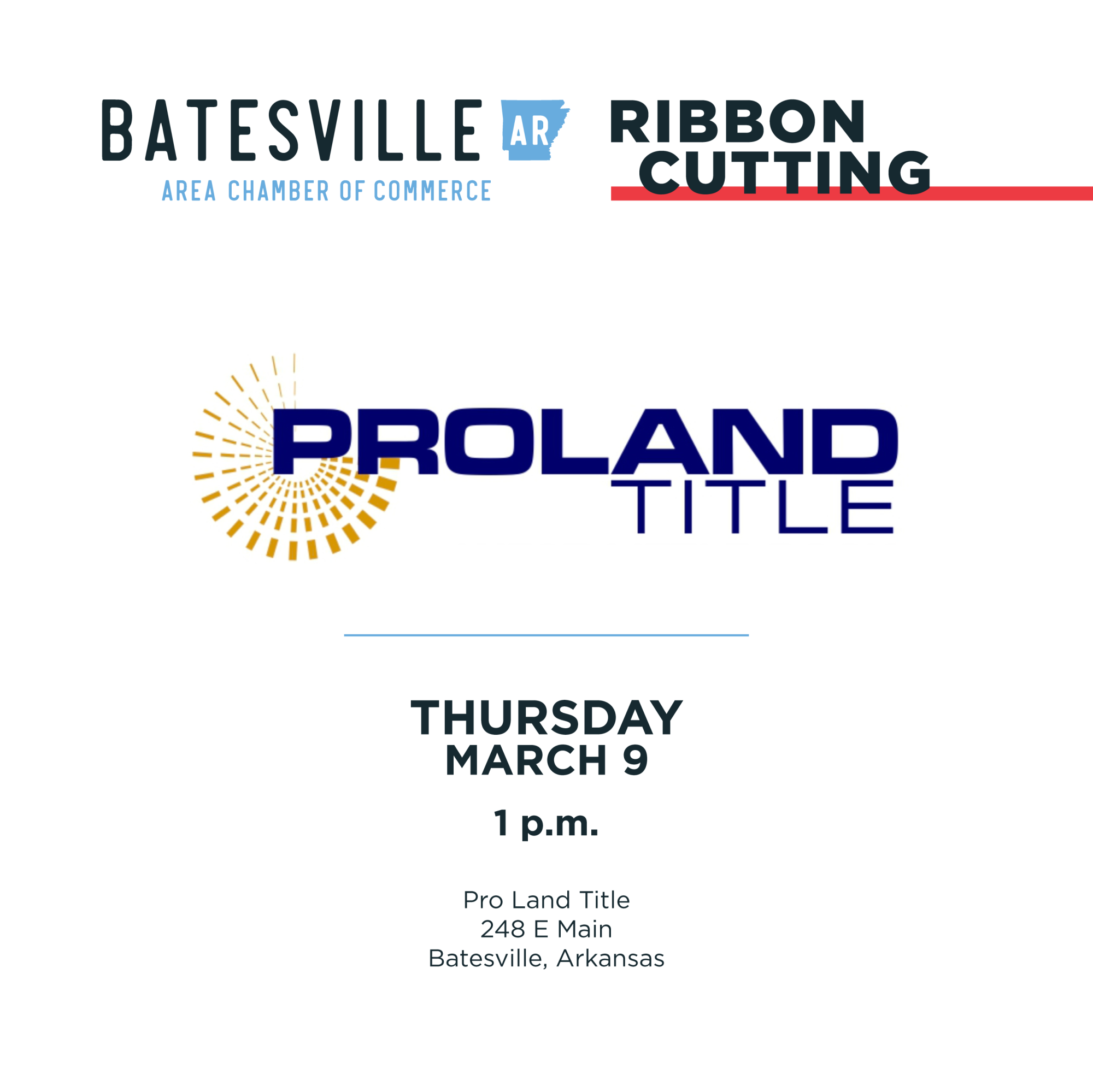 The Batesville Area Chamber of Commerce (BACC) will hold a Ribbon-Cutting ceremony for ProLand Title. The Ribbon-Cutting, which will occur at 248 East Main Street in Batesville on Thursday, March 9, at 1 p.m., is being held to celebrate the new ownership and name of a long-standing Main Street business.