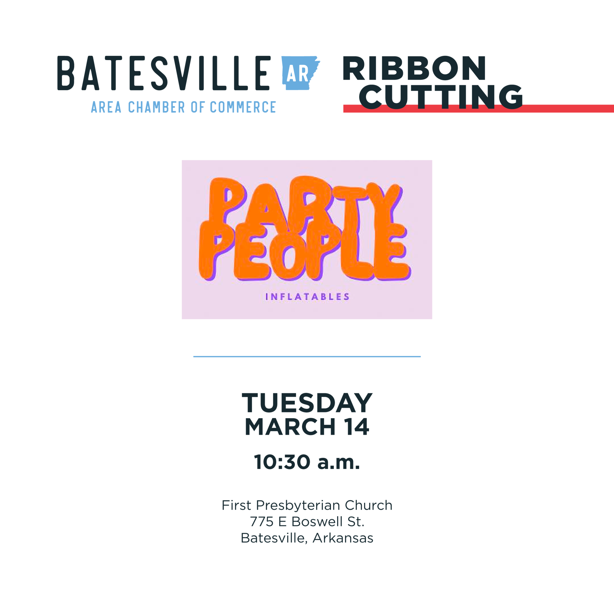 The Batesville Area Chamber of Commerce will hold a Ribbon-Cutting ceremony for Party People. The Ribbon-Cutting will occur at First Presbyterian Church at 775 East Boswell Street in Batesville on Tuesday, March 14, at 10:30 a.m.