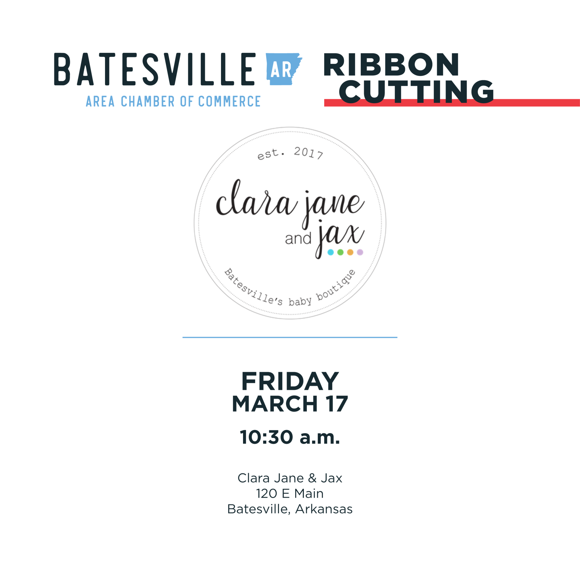 The Batesville Area Chamber of Commerce will hold a Ribbon-Cutting ceremony for Clara Jane and Jax. The Ribbon-Cutting will occur at 120 East Main Street in Batesville on Friday, March 17, at 10:30 a.m.