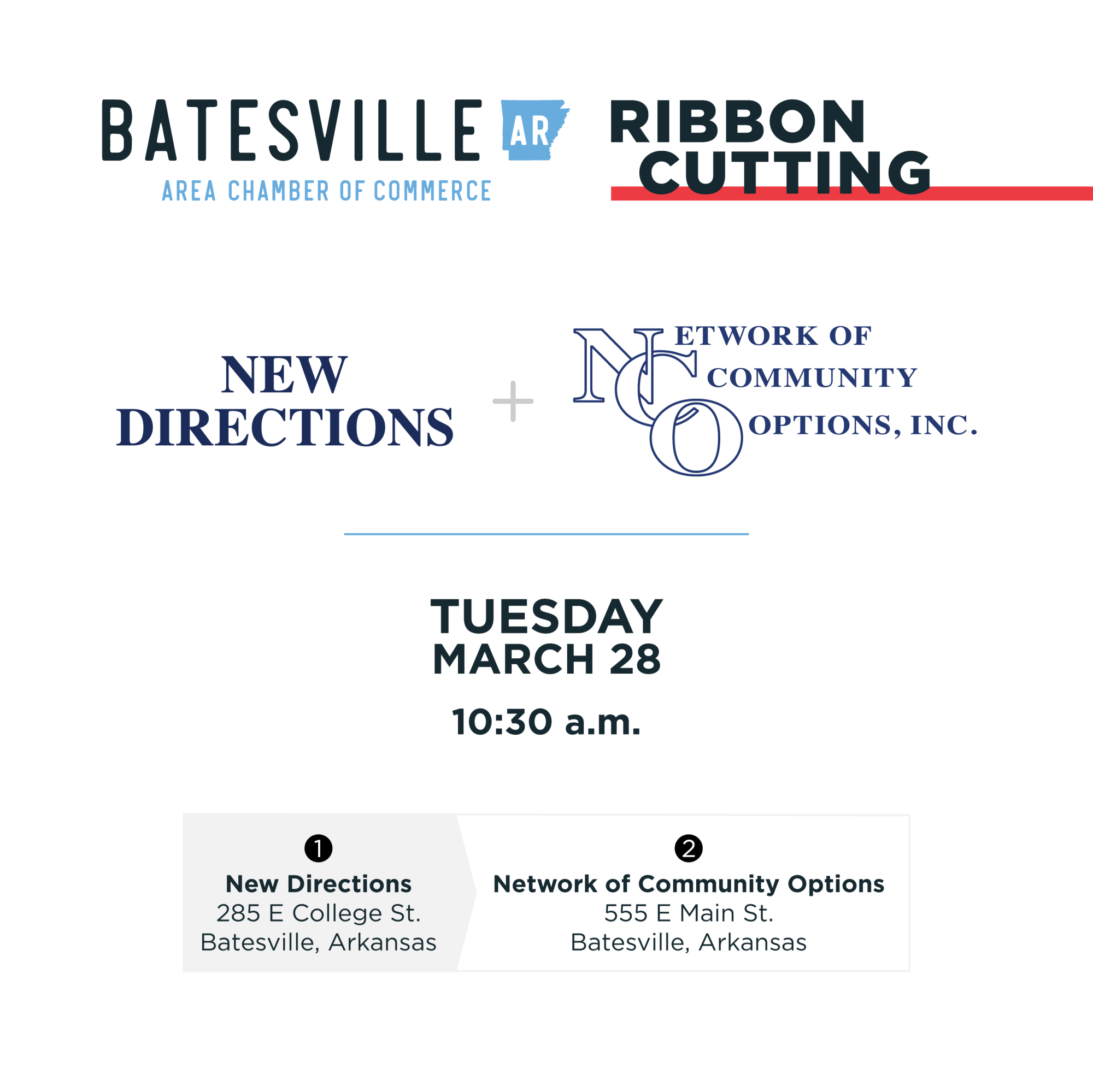 The first ceremony will occur at New Directions at 285 East College Street in Batesville, on Tuesday, March 28, at 10:30 a.m. Immediately following, a second ceremony and open house will occur at Network of Community Options' new headquarters at 555 East Main Street in Batesville.