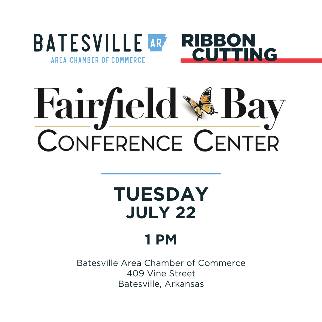 The Batesville Area Chamber of Commerce will host a Ribbon-Cutting ceremony for The Fairfield Bay Conference Center to welcome them as new members to the Chamber and share what the Fairfield Bay community has to offer. The ceremony will take place on Tuesday, July 22, at 1 p.m. at the Chamber of Commerce office located at 409 Vine Street in Batesville.