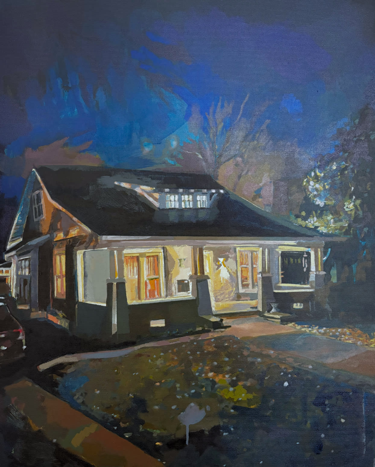 In dwellings, Dustyn Bork explores themes of home and place through a series of paintings depicting downtown Batesville homes at night. He was inspired to “capture the moment and feeling of peace expressed through architecture.”