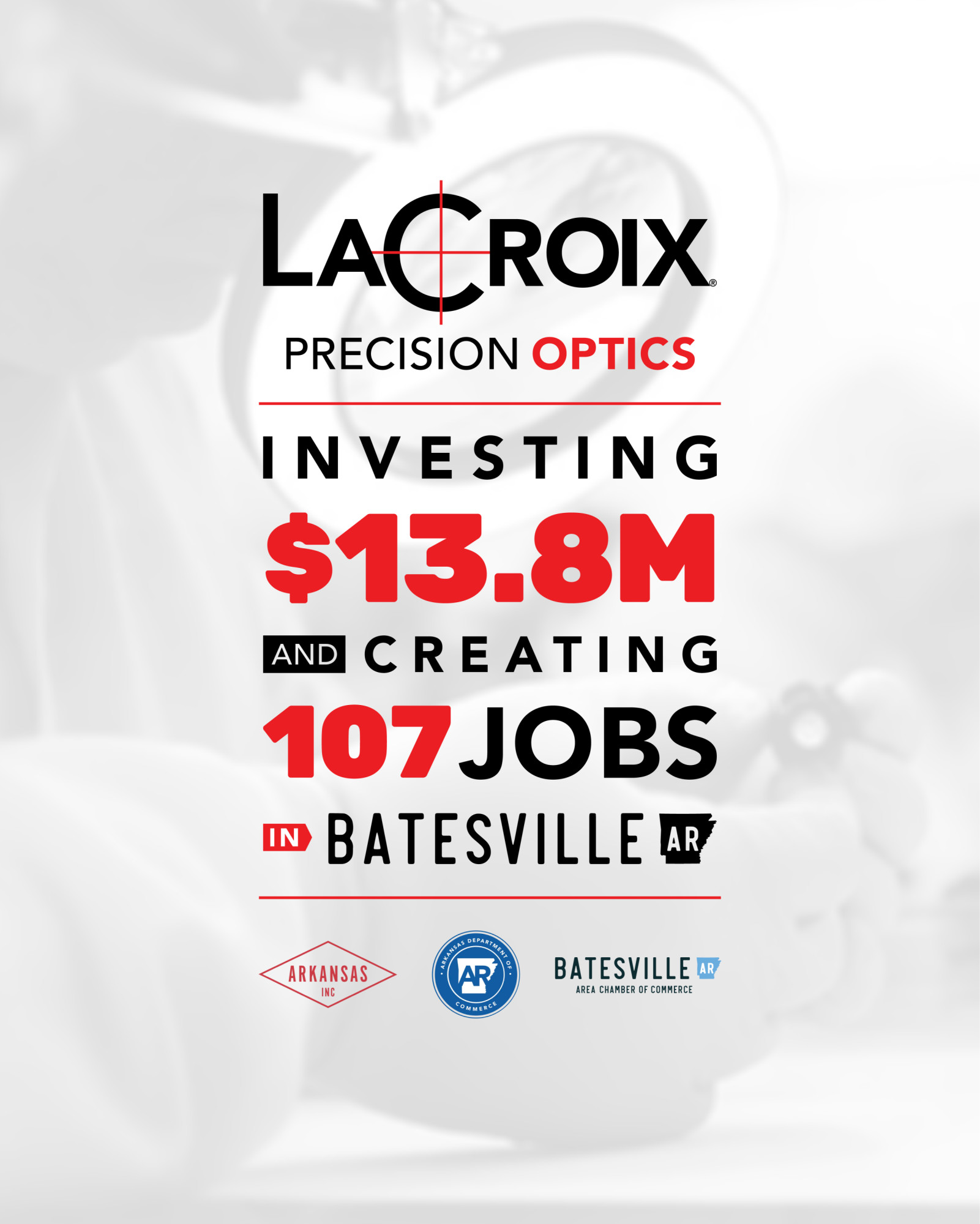 “In Arkansas, businesses have the resources and support to grow – like LaCroix Precision Optics which is growing now in Batesville with a significant investment,” said Secretary of Commerce Hugh McDonald. “Companies like LaCroix are investing in Arkansas because of our pro-business climate with low costs and an experienced workforce. Congratulations to LaCroix Precision Optics and the City of Batesville on this expansion.”