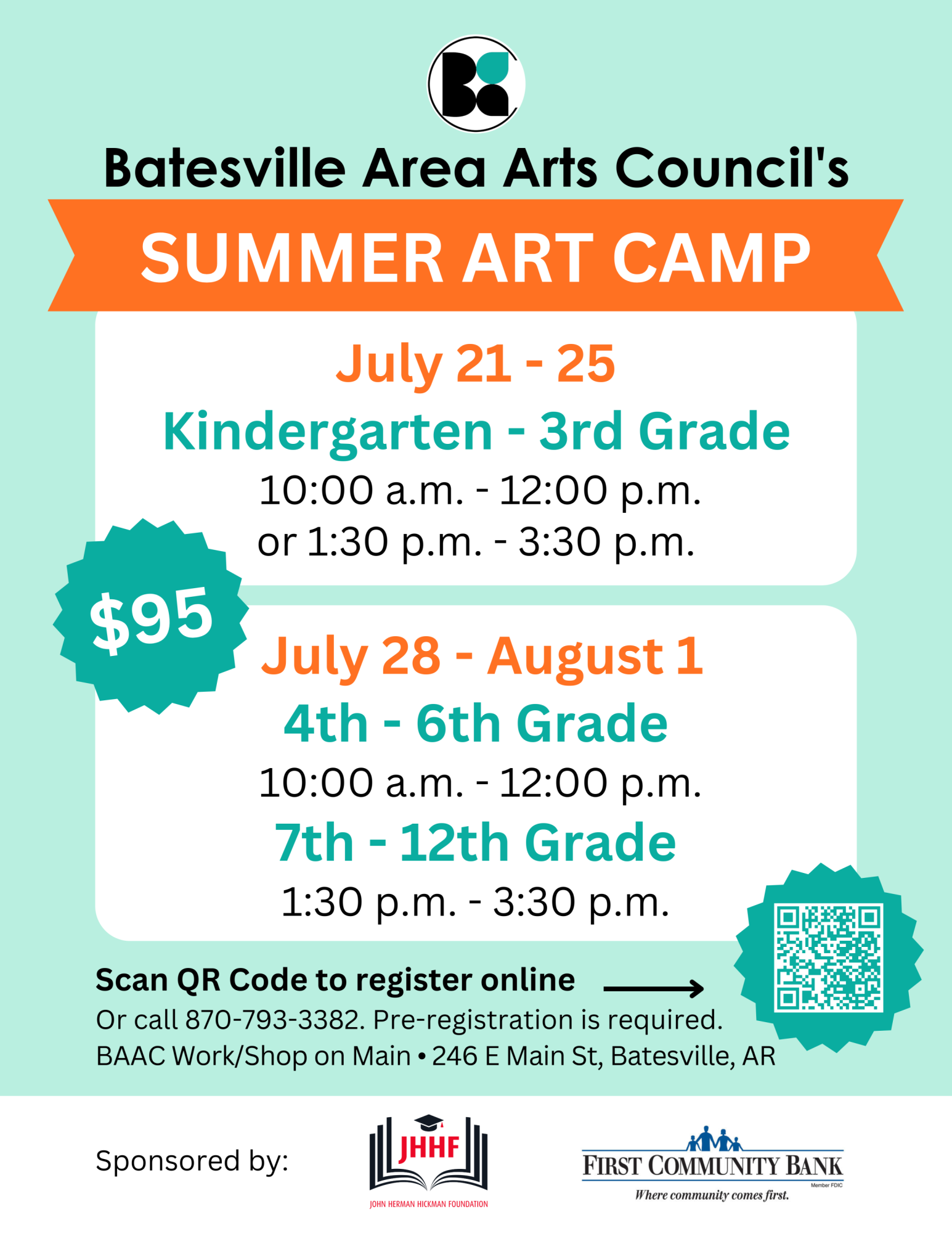 For more information or to register, please call (870) 793-3382 or visit www.batesvilleareaartscouncil.org. This program is generously supported by The John Herman Hickman Foundation and First Community Bank.