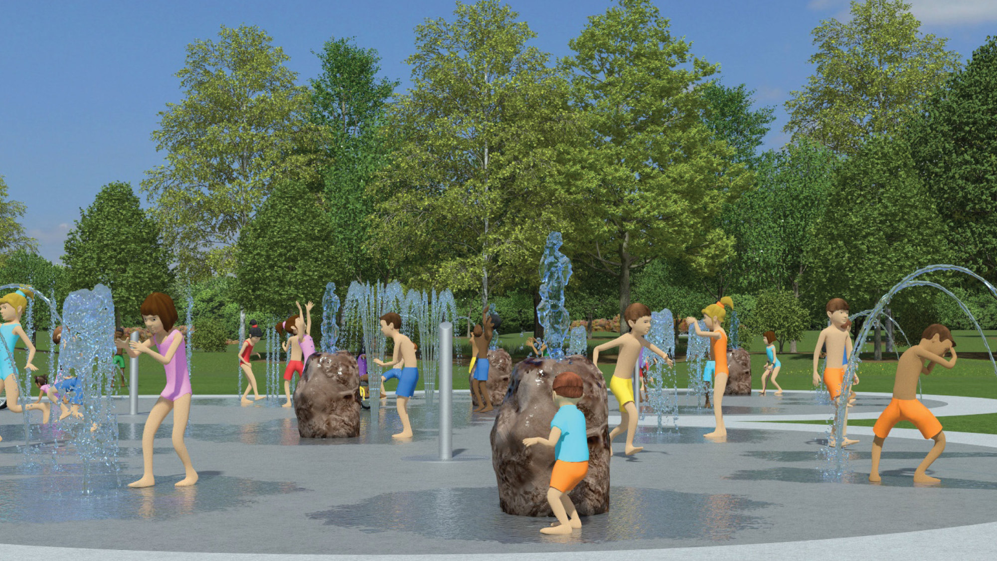 - West Side Park – nature-themed play structure and interactive splash pad.