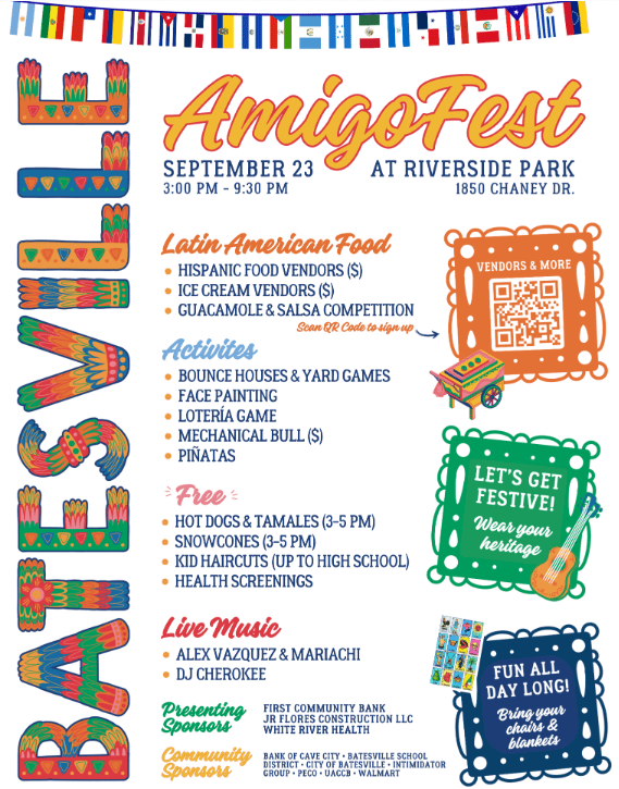 AmigoFest is a celebration for Hispanic Heritage Month. Bring out the family for some food, a mariachi band, DJ, bounce houses, a salsa and guacamole contest, play some Mexican “bingo” to win prizes, show your skills on a mechanical bull, break some piñatas, see some art from students, and much much more.