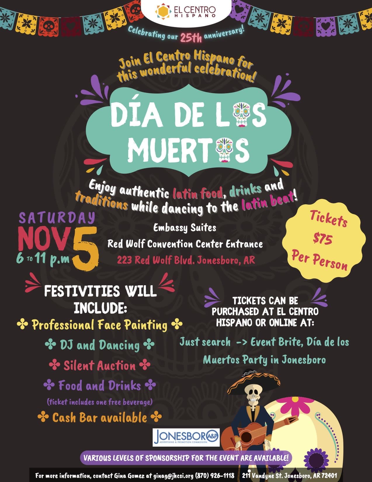 Join El Centro Hispano for this wonderful celebration! Enjoy authentic Latin food, drinks, and traditions while dancing to the Latin beat. Attire: Black and White Cocktail Tickets: $75 per person. Tickets can be purchased at El Centro Hispano or at Venmo:@elcentrohispano or Cashapp:$elcentrohispano