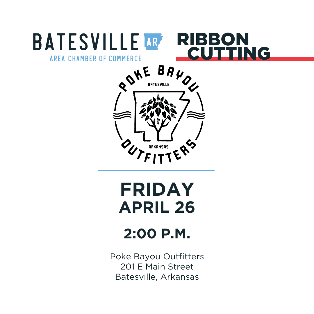 The Batesville Area Chamber of Commerce will hold a Ribbon-Cutting ceremony for Poke Bayou Outfitters on Friday, April 26 at 2:00 p.m. at 201 E Main Street in Batesville.
