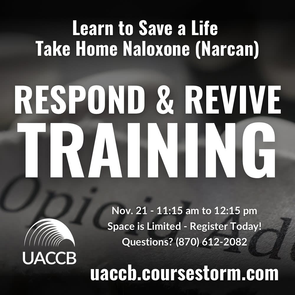Attend this FREE, one-hour training session at UACCB designed to prepare you with the knowledge and skills to reverse an opioid overdose using Naloxone (Narcan). This essential training is open to everyone in our community. Participants will learn how to recognize the signs of an opioid overdose and administer Naloxone safely and effectively.