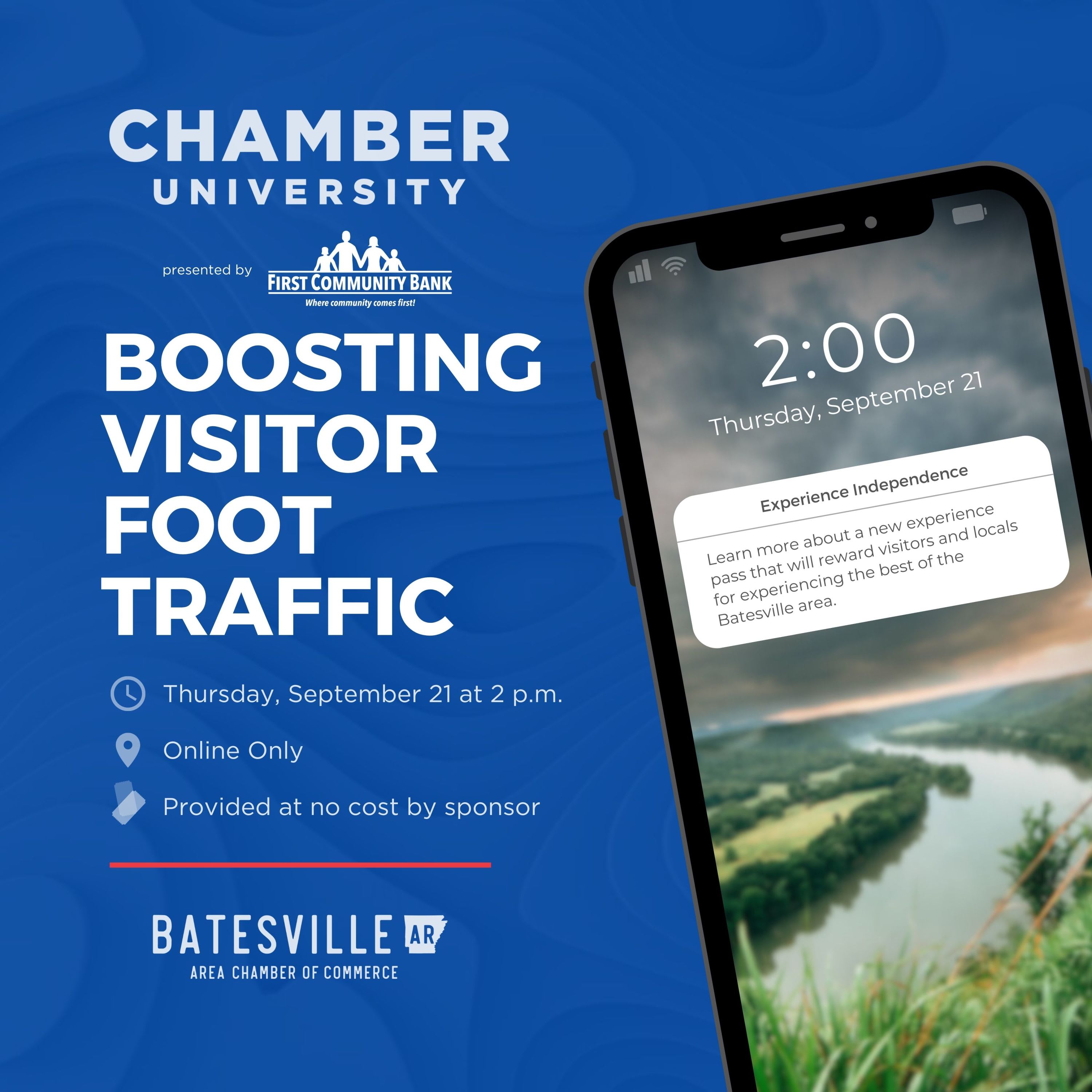 📢 Join Us for Chamber U: Boosting Visitor Foot Traffic! The Batesville Area Chamber of Commerce is excited to announce the next session of Chamber University, presented by First Community Bank. Our Chamber University program is designed to provide members with valuable insights in a quick and engaging format.